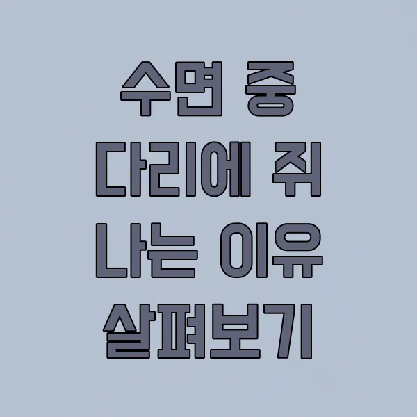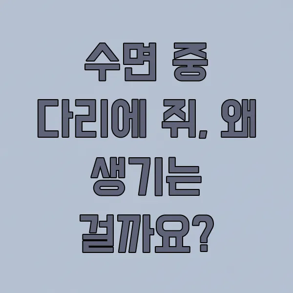 자다가 갑자기 다리에 쥐가 나서 깜짝 놀라신 경험, 한 번쯤 있으시죠? 밤마다 찾아오는 불청객 같은 이 증상 때문에 잠을 설치기도 하는데요. 대체 왜 이런 일이 일어나는 걸까요? 오늘은 수면 중 다리에 쥐가 나는 다양한 원인들을 함께 알아보고, 어떻게 하면 이 불편함에서 벗어날 수 있을지 이야기 나눠볼게요!