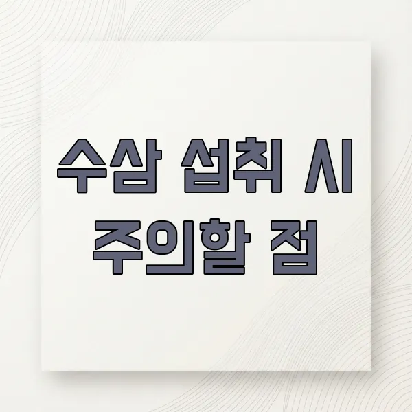 아무리 몸에 좋은 수삼이라도 과하게 먹으면 좋지 않을 수 있어요. 일반적으로 하루에 1~2뿌리 정도가 적당하며, 평소 몸이 찬 사람이 너무 많이 먹으면 오히려 기운이 떨어질 수 있다는 이야기도 있거든요.