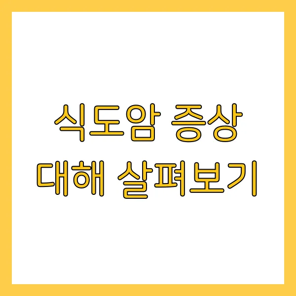* **초기 증상**: 음식을 삼킬 때 걸리는 느낌이나 불편함이 느껴질 수 있습니다. 고형 음식을 삼키기 어려워지는 것이 일반적입니다. * **진행된 증상**: 점차적으로 부드러운 음식이나 액체류를 삼키는 것조차 어려워질 수 있습니다. 심한 경우, 침을 삼키는 것조차 고통스러울 수 있습니다. * **주의 사항**: 단순한 소화 불량으로 오인하기 쉽지만, 삼킴 곤란이 지속될 경우 반드시 전문의와 상담해야 합니다.